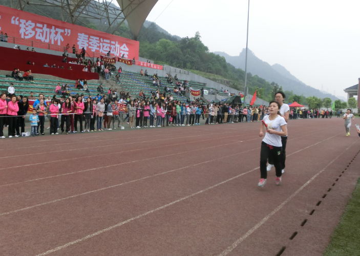 2013年4月12日下午,四川外语学院西区体育场进行了员工女子4×400接力决赛,赵然、王莎莎、韩旖旎、刘佳代表法语系参加比赛。