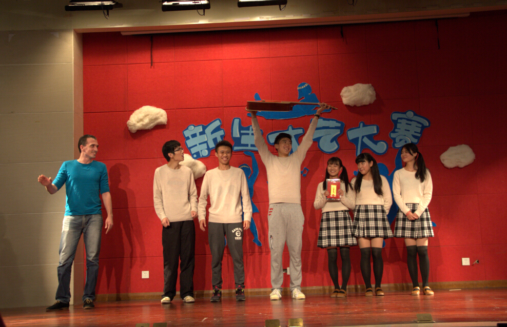大赛在大二同学热辣的开场舞中拉开了序幕。歌声犹如天籁,陶醉了我们的耳朵;街舞打着节奏,冲击了我们的眼球;别出心裁的话剧,赢得了老师同学们的笑声和掌声;独具创意的手语表演,给大家留下了深刻的印象;融合了街舞和重庆特色的说唱歌舞表演亦使人眼前一亮。各类表演精彩纷呈,高潮迭起。在经典法语歌曲《Je m’appelle Hélène》优美的歌声中,此次新生才艺大赛落下了帷幕。张俊丰老师妙语连珠,对节目进行了精彩而精辟的点评,引来台下欢笑阵阵。充满搞怪元素和青春活力的舞蹈《啪叽啪叽》以93的高分赢得了本次大赛的一等奖。