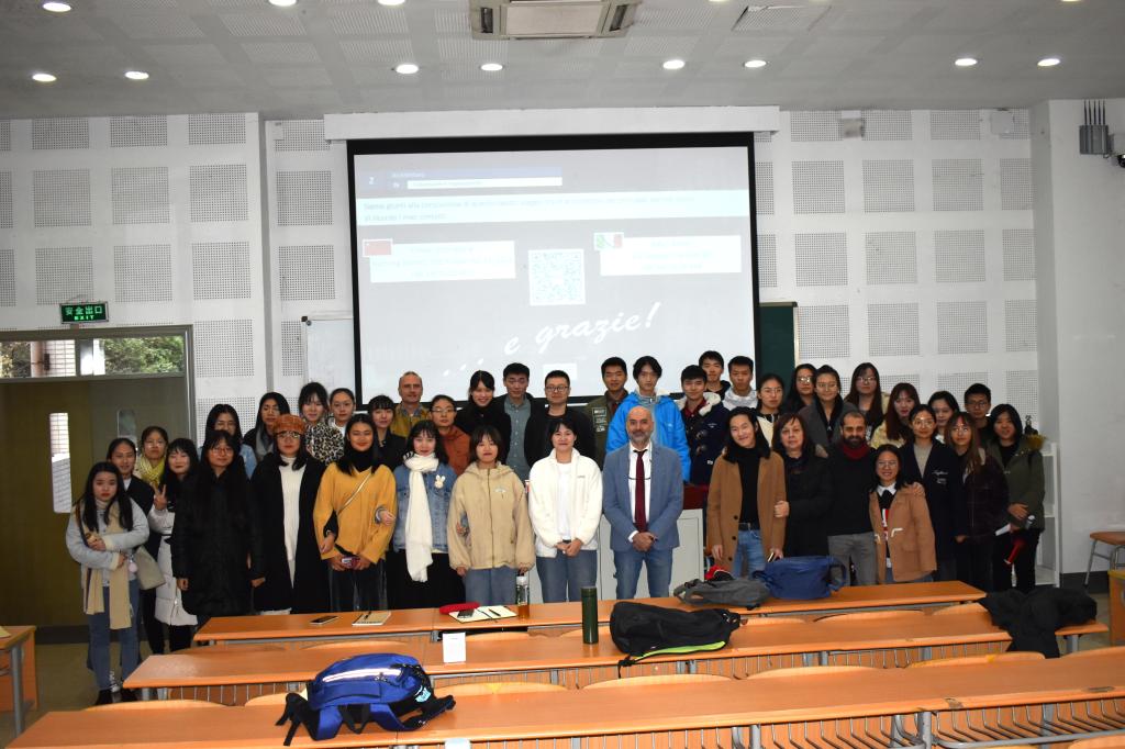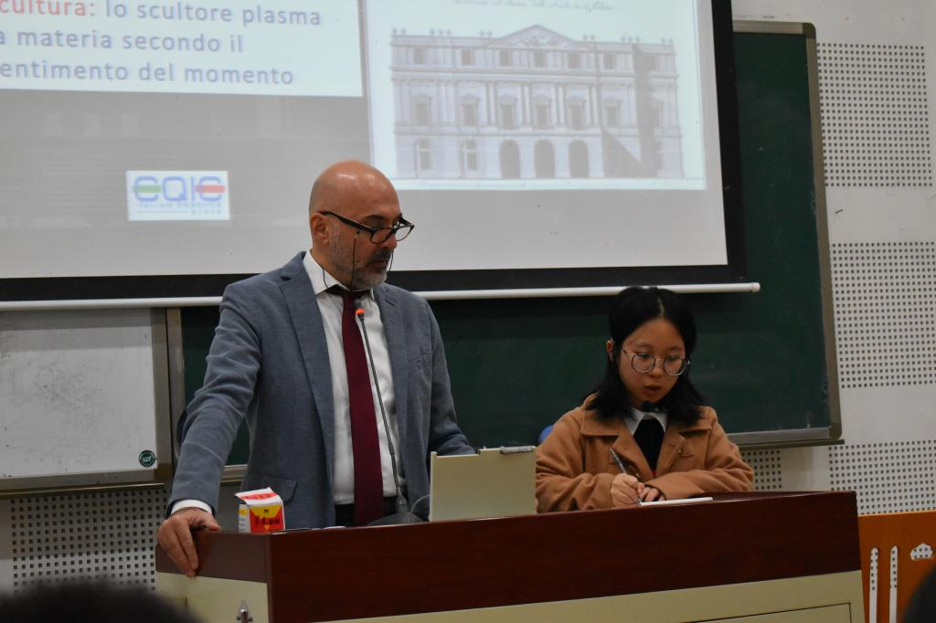 2019年11月29日14:30,在渝工作的意大利设计师Stefano Iannelli(杨关)先生应邀在西区教学楼B1-2阶梯教室做了一场主题为“建筑与设计——从古希腊到近现代”的讲座,此次讲座由陈英老师主持,主要面向我系意语大一、大二及大四师生。