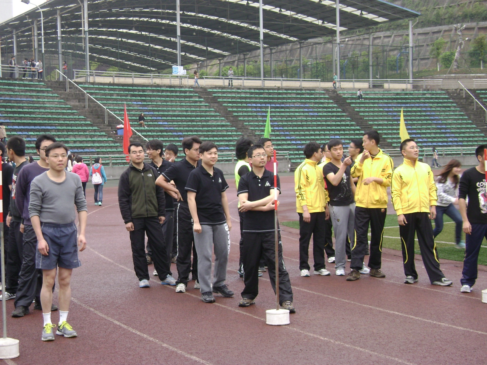 2013年4月11日早上十点十分,教工14×80米混合迎面接力在西区操场主席台对侧跑道进行,法语系的14名教师参加接力赛,并取得了全校第六名的好成绩。