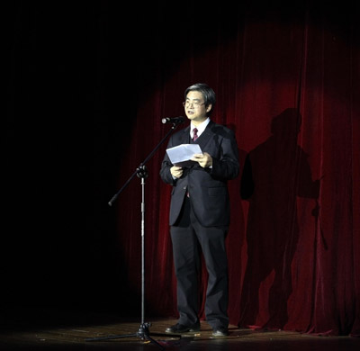 2011年12月12日晚19点,2011年“中国法语年·重庆法语周”开幕式暨文艺晚会在四川外语学院拉开了帷幕。到场的嘉宾有四川外语学院董事长李克勇教授、法盟驻北京总代表Laurent Croset先生、法国驻成都领事馆代表Venturin Maxime先生、法国大学驻成都领事代表Julien Jean先生等。