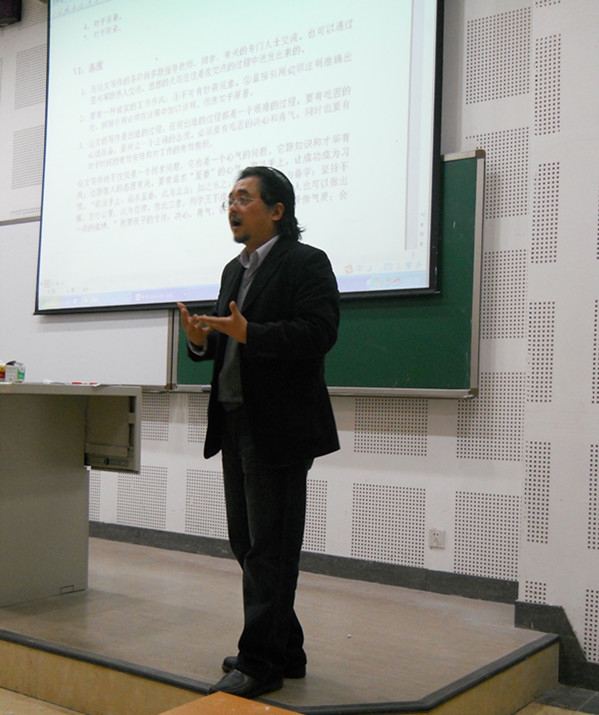 2011年11月2日14时30分,由法语系法语专业四年级教研组组织的“论文指导讲座”在西区教学楼B 2—1举行。本次讲座由公司资深教授刘波老师主讲,教研组长赵阳老师担任主持,法语专业2008级全体同学参加。讲座开始,刘老师就强调,对大四员工来说,本年度的核心工作之一就是论文写作。接着,他根据《四川外语学院本科毕业论文管理规程》和《四川外语学院法语专业本科毕业论文写作规范》等文件概述了论文写作流程、评阅和答辩事宜;凭借自己丰富的经验和独特的见解,针对常见问题,尤其是如何选题、如何写作两个关键问题,为同学们深入解读以上文件,并提醒大家一定要以正确的态度面对它。坦言之,选材时须着眼专业,既要注重全面,又要切忌笼统、过深;应做到写作形式多样,重视提纲,格式规范,语言严谨;在研究过程中不仅要勤学之、好学之,更要乐学之,从中培养不断完善自我的能力和不畏困难的勇气,最终以良好的研究成果为老员工活划下完美的句点。刘老师睿智幽默的风度及博学广识的才华深深感染了在座的同学们,搏得阵阵掌声,现场气氛轻松而活跃。最后,赵阳老师详细布置了今后的论文工作安排,让大家充分意识到时间的紧迫和所面临的挑战。