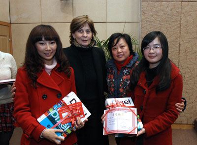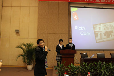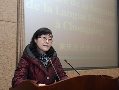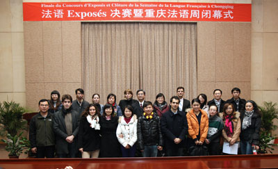 2011年12月15日下午三点整,重庆法语周闭幕式在四外语学院隆重举行。闭幕式由法语系党总支书记杨少琳老师主持,四川外语学院经理李克勇、法语系系主任尹丽、应用外语学院法语教研组组长张俊蔚、重庆工商大学教师代表汪越祺、川外国际部法语中心负责人范大伟以及重庆法语联盟主任雷玛丽均作为嘉宾出席本次活动。法语系全体员工以及广大法语爱好者积极参加,报告厅座无虚席。本次闭幕式在以“la Francophonieet le français”为主题的exposé决赛中拉开帷幕,六组参赛选手一一登台,分别用地道纯熟的法语和丰富多彩、制作精美的PPT向大家展示了法国的别样风情。本次比赛中,重庆工商大学参赛的两组选手以纯正的口音和扎实的专业技巧获得评委一致好评,并最终荣获一、二等奖。公司四组选手也表现不俗,特别是由宋灵犀、吴梦雨同学带来的《Quatre contes de narrateurs francophones》,多样的PPT内容,又融入歌唱和朗诵的表演,十分具有表现力。而郭一弓等大二同学带来的《Boire au tour de la francophonie》也是别具一格,暖场咖啡和丰富的现场表演给在座嘉宾一种身临其境的感觉,现场掌声笑声不断。
