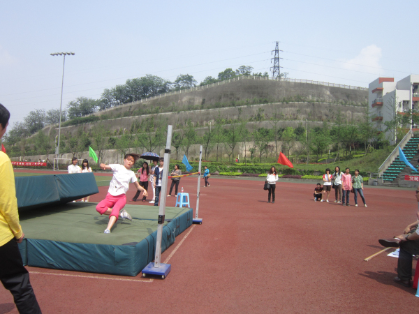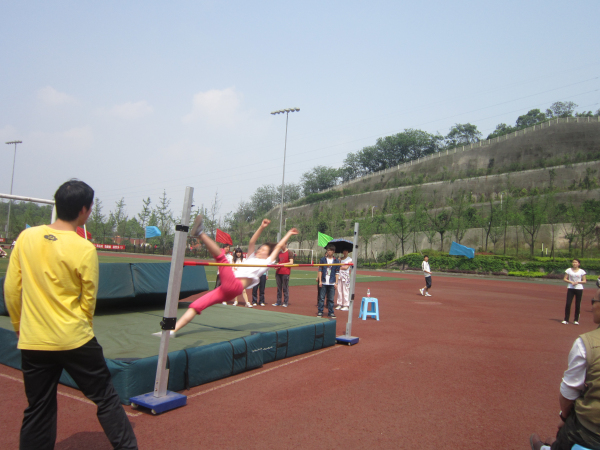 4月20日下午2点,山上操场的一角,激动人心的员工女子跳高比赛正如火如荼的进行着。昨天这个时候正是员工男子跳高记录的大幅度刷新进行时,而此刻,女子健儿们正面对那道不断升起的红线昂首冲刺,纵身飞跃。观众们热情也如这山城的气温节节高升,欢呼声、加油声此起彼伏。我系的孟帆同学不断超越,那矫健的身影,轻盈的脚步,大有欲与天公试比高之势,最终荣获第三名的佳绩,赛出了水平,赛出了风格!