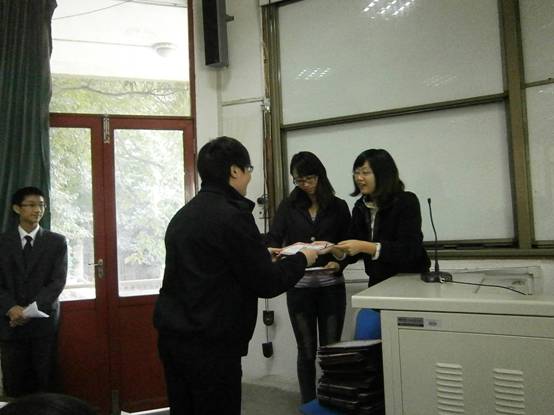 2011年11月11日中午12:30,我系2011届团总支员工会换届大会在水二教室隆重召开。出席此次会议的有系团总支书记李明蔚老师、辅导员黄巧灵老师、员工会的老干部、老干事及11届员工会全体成员。首先,2010级员工会主席吕凡代表老一届员工会成员做总结发言。他以自身经历教导并鼓励新一届员工会成员,并表示良好的祝愿与希望。然后,辅导员老师为员工会老一届成员发放聘书,而这也标志着新一届员工会的正式成立。那热烈的掌声不仅是荣誉,更是对他们辛勤工作的肯定!其后,新一届员工会主席安益君发表讲话,她大致向全体员工会成员介绍了这一年员工会工作的规划,确立了本年员工会的目标,同时也谈了对新一届员工会的期望,并表示了要带领本届员工会取得更加辉煌的成果的决心。接着,在团总支副书记臧艺航宣读新一届法语系团总支员工会成员名单后,2011级年级负责人张莹代表员工会新干事讲话,表达了全体新干事将在员工会努力工作,推进法语系员工会进步的坚定决心。